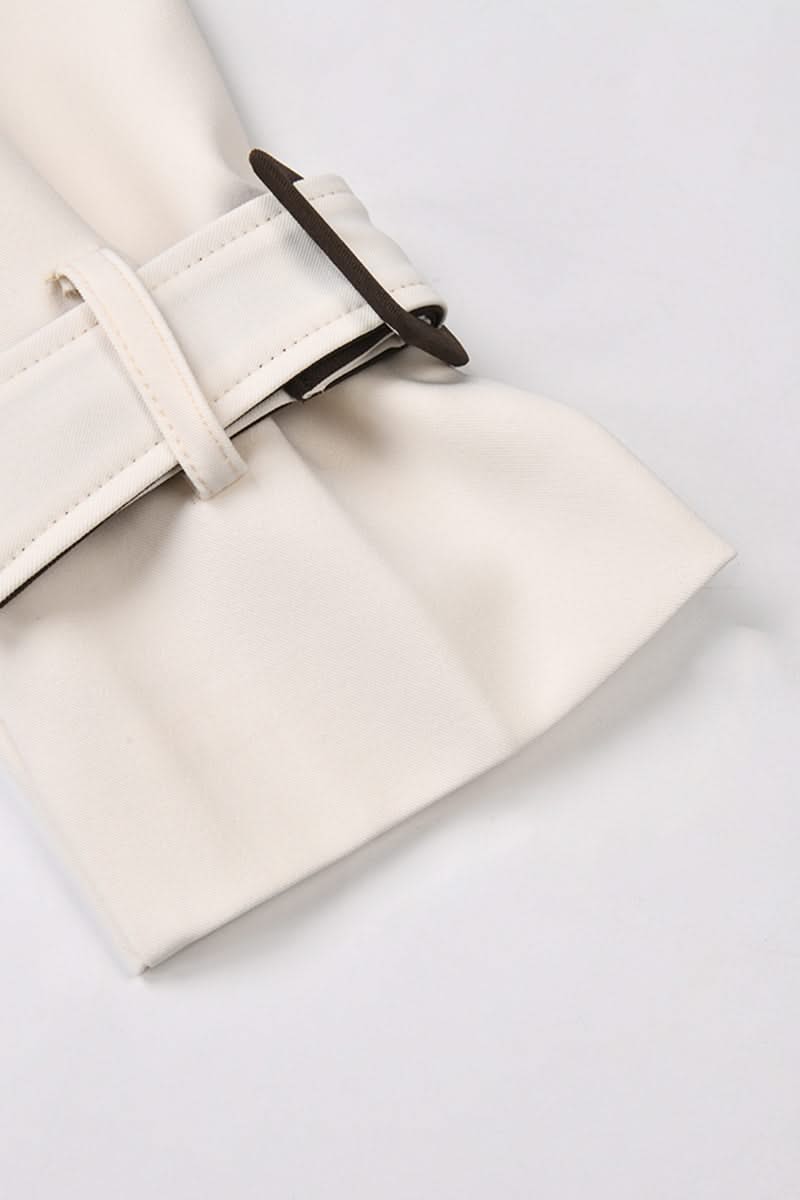 The Averie Dual-Tone Trench Coat is a statement in refined contrast. Crafted from smooth, structured fabric, this coat blends timeless tailoring with a bold modern twist through its mocha and ivory panel design. Featuring a belted waist for a cinched silhouette, wide lapels, and double-breasted detailing, it’s designed to elevate any ensemble—from weekday polish to evening sophistication.